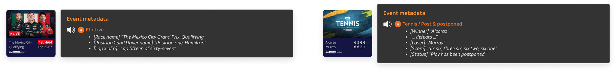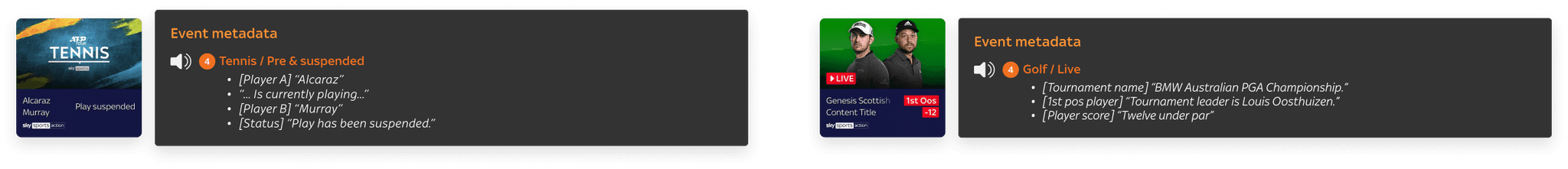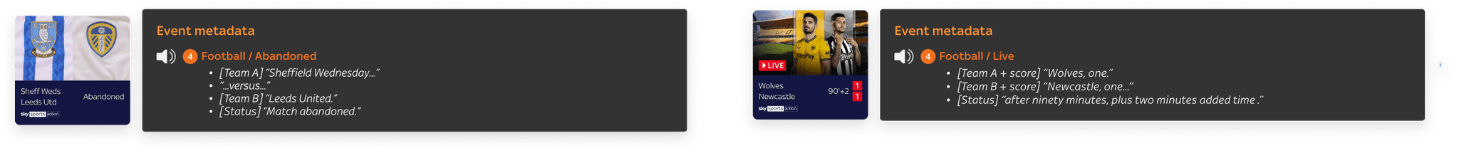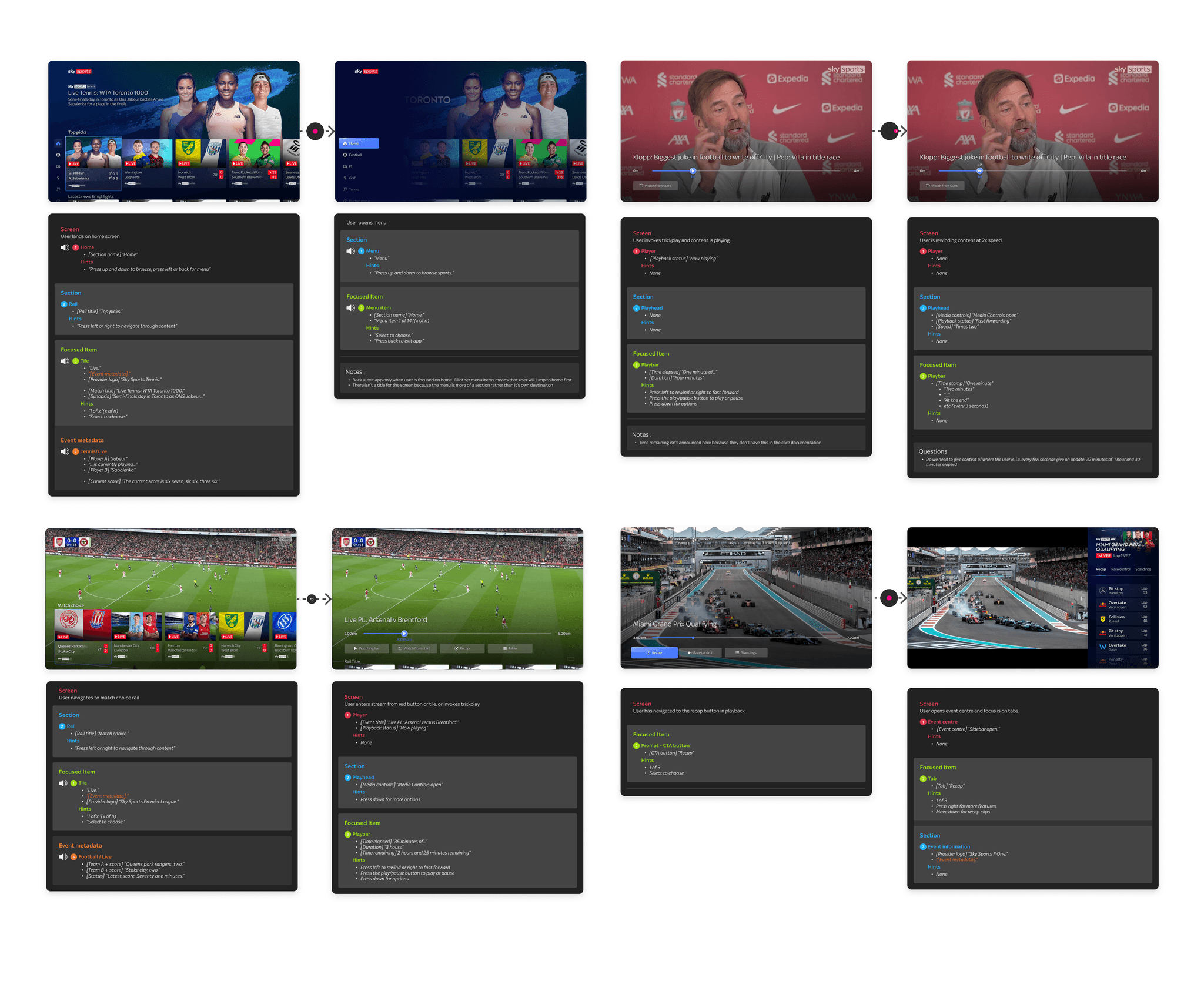 Voice guidance scripting was required across Sky’s core products on Entertainment OS, with existing browse and playback principles in place. However, there were adaptations that needed to be made and new components to consider as part of the sports experience.