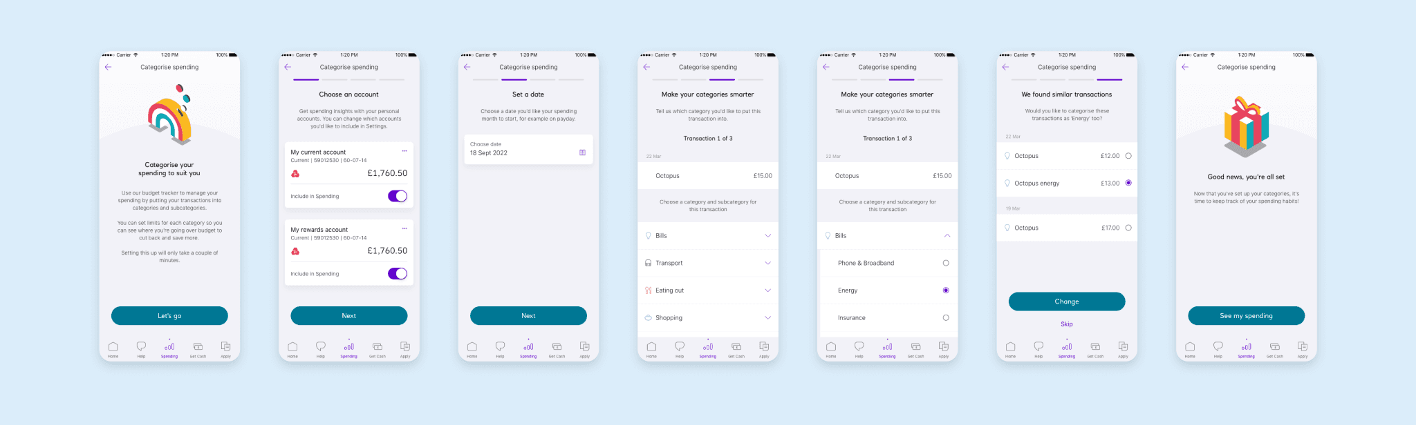The final flow considers 4 key journeys: onboarding first-time users, assigning categories, viewing categories and recategorising. The design process also took into consideration the presentation of data and unhappy paths.